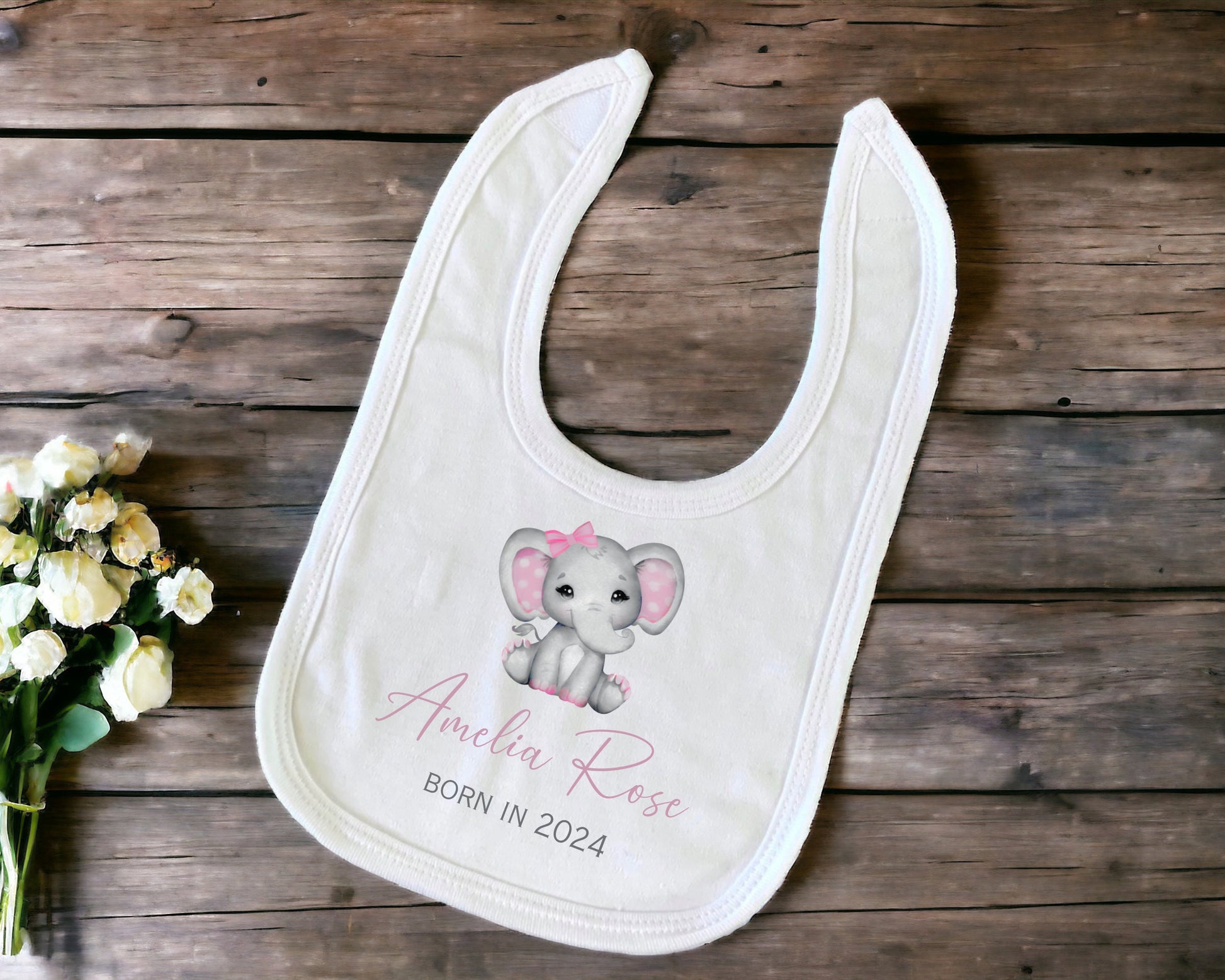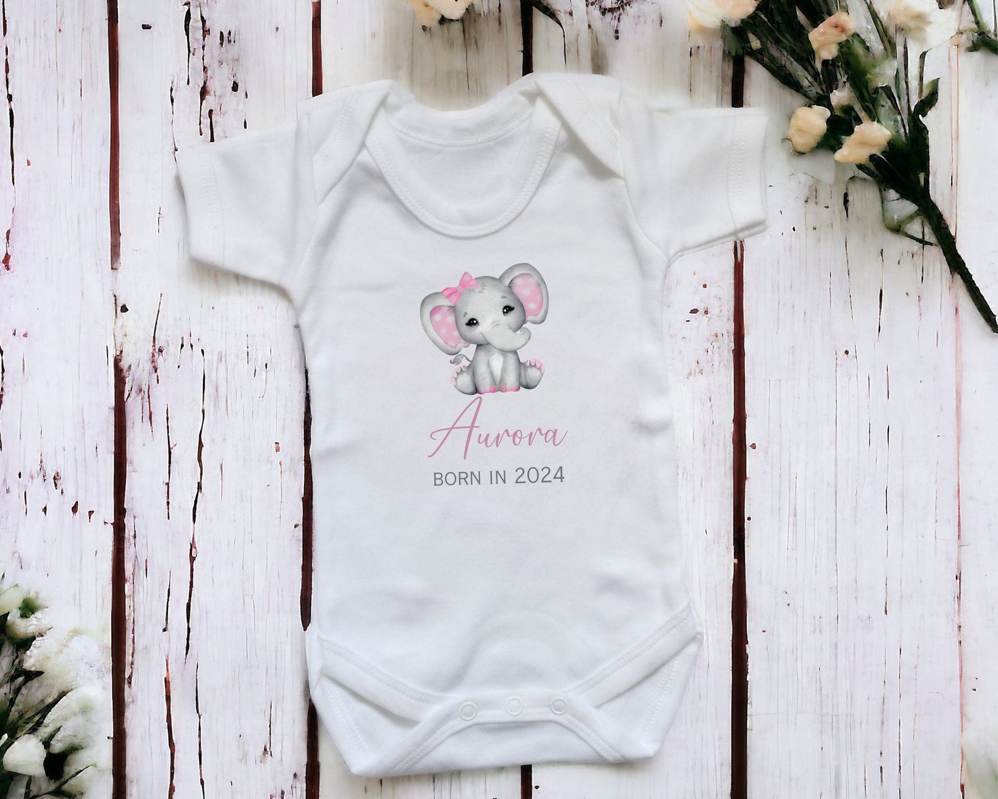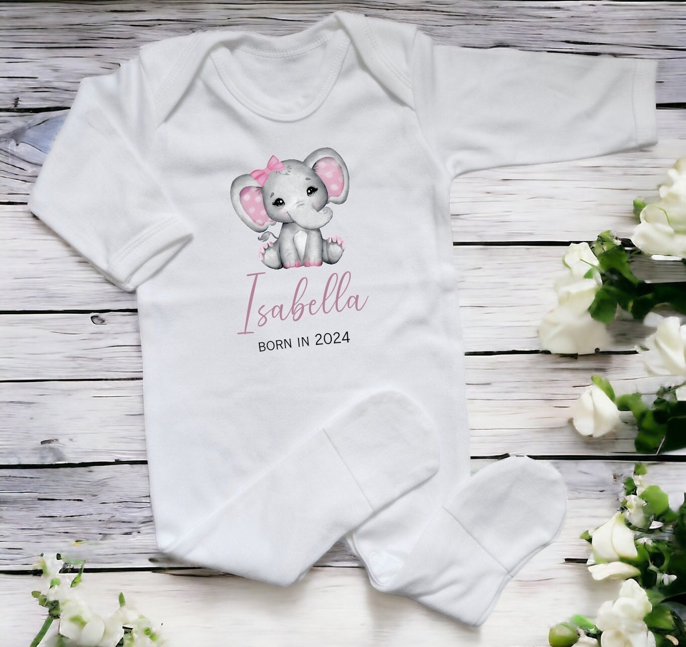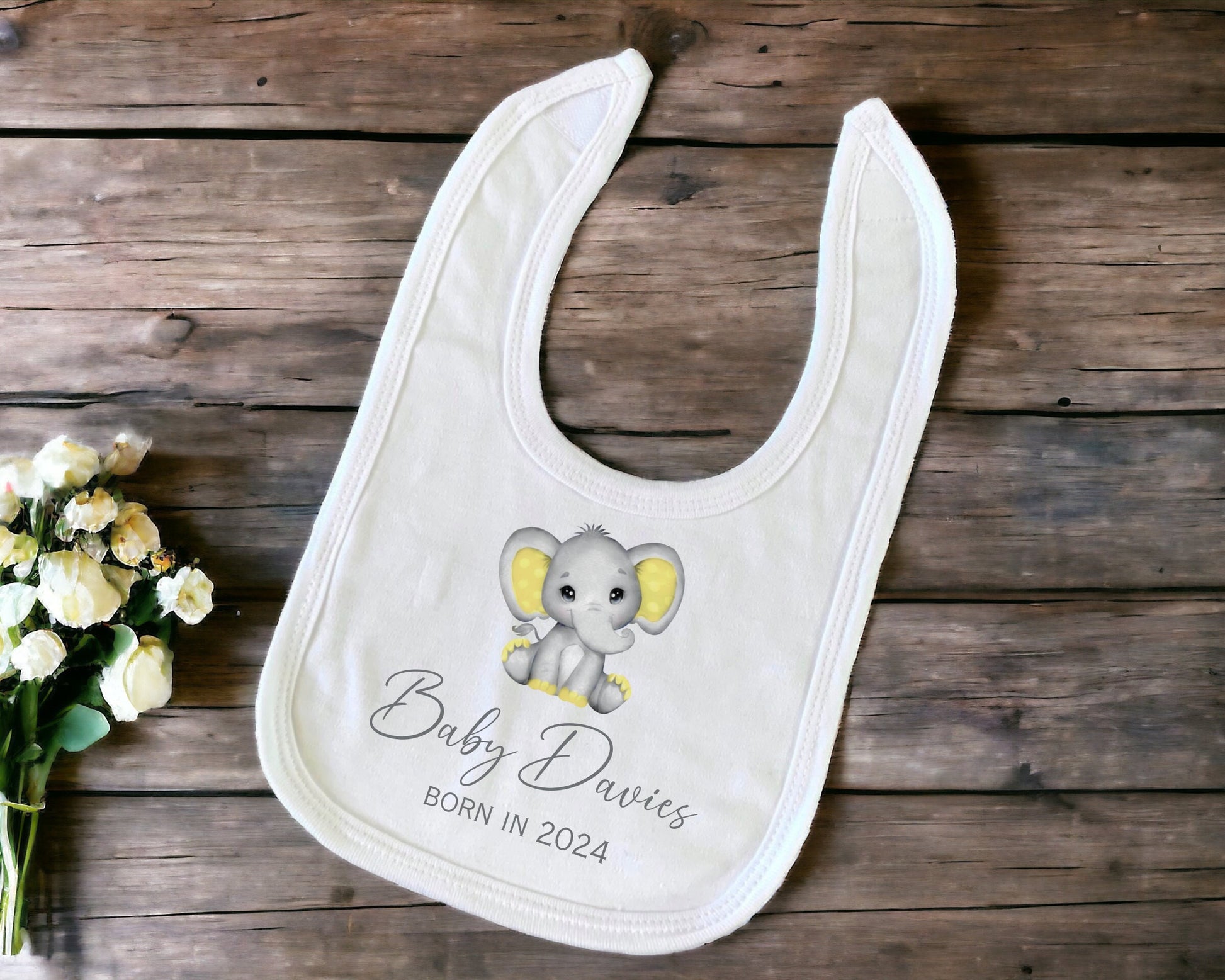 Personalised Baby Sleepsuit Elephant Bodysuit Bib Custom New Baby Gift Coming Home Outfit Baby Girl Baby Boy Team Yellow