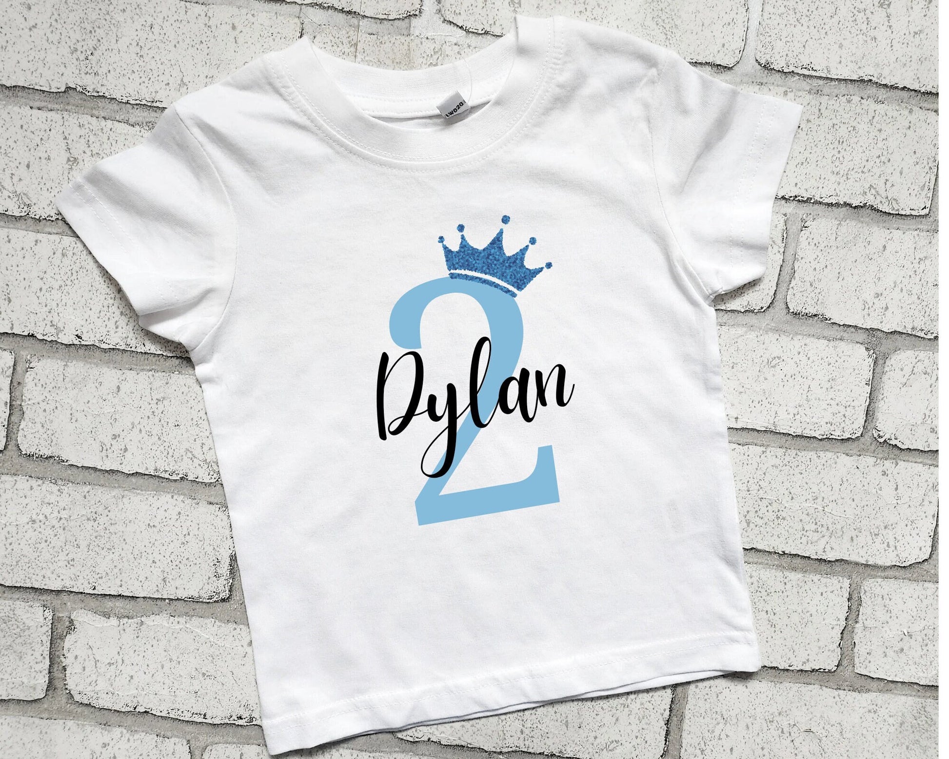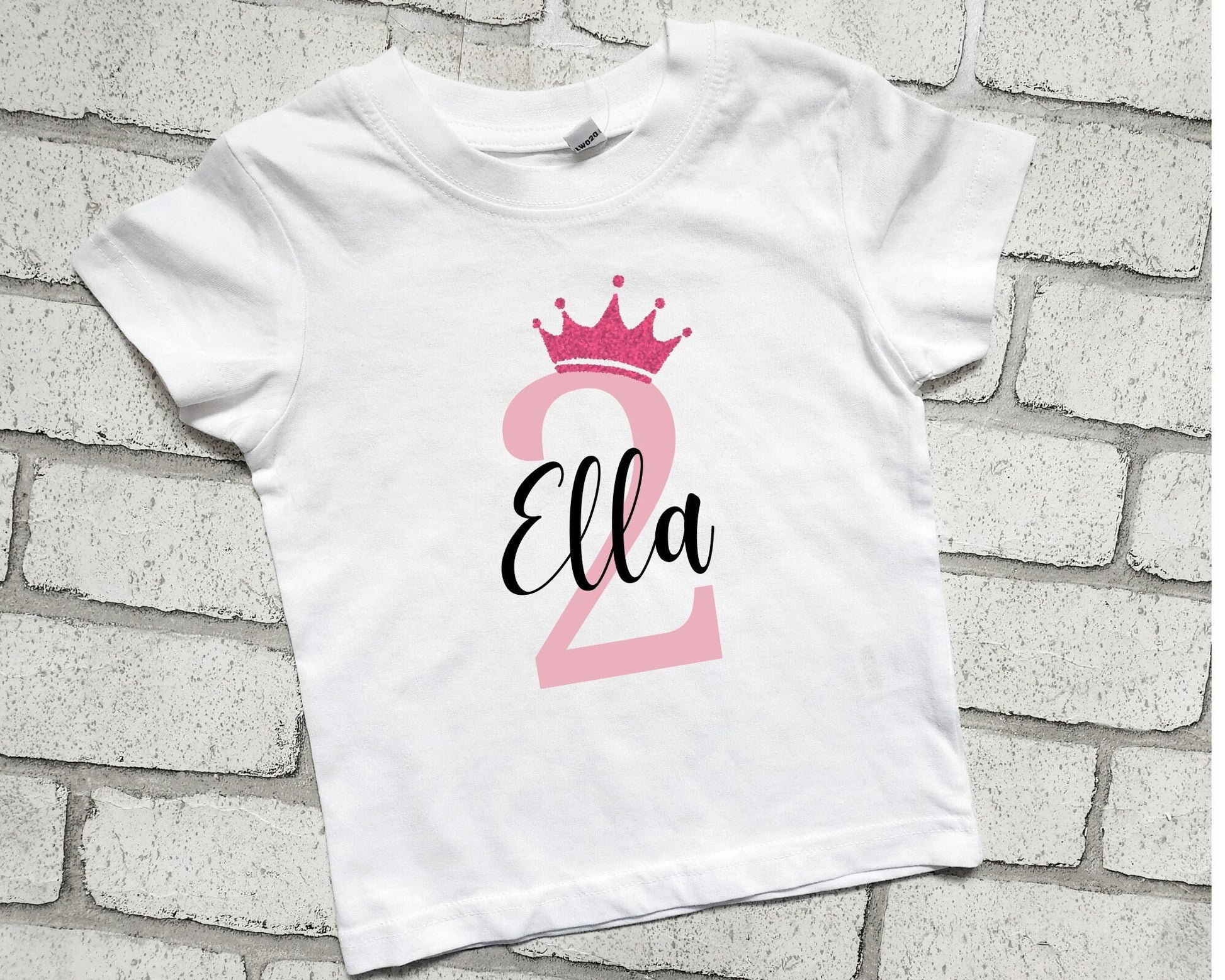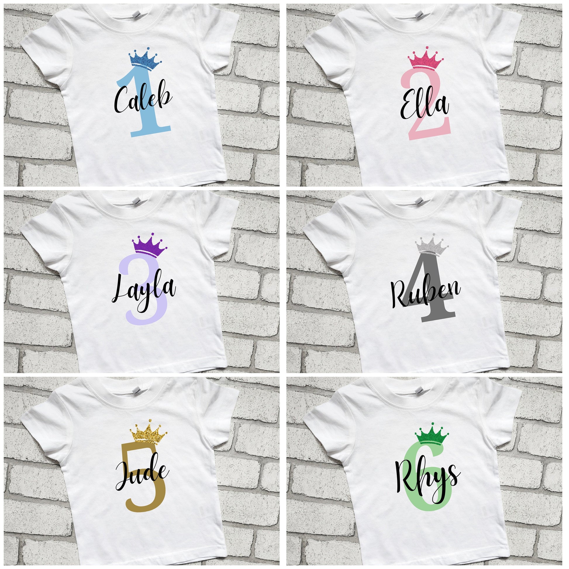 Personalised Birthday T Shirt Birthday Top Name Glitter Crown Boy Girl Cotton Top