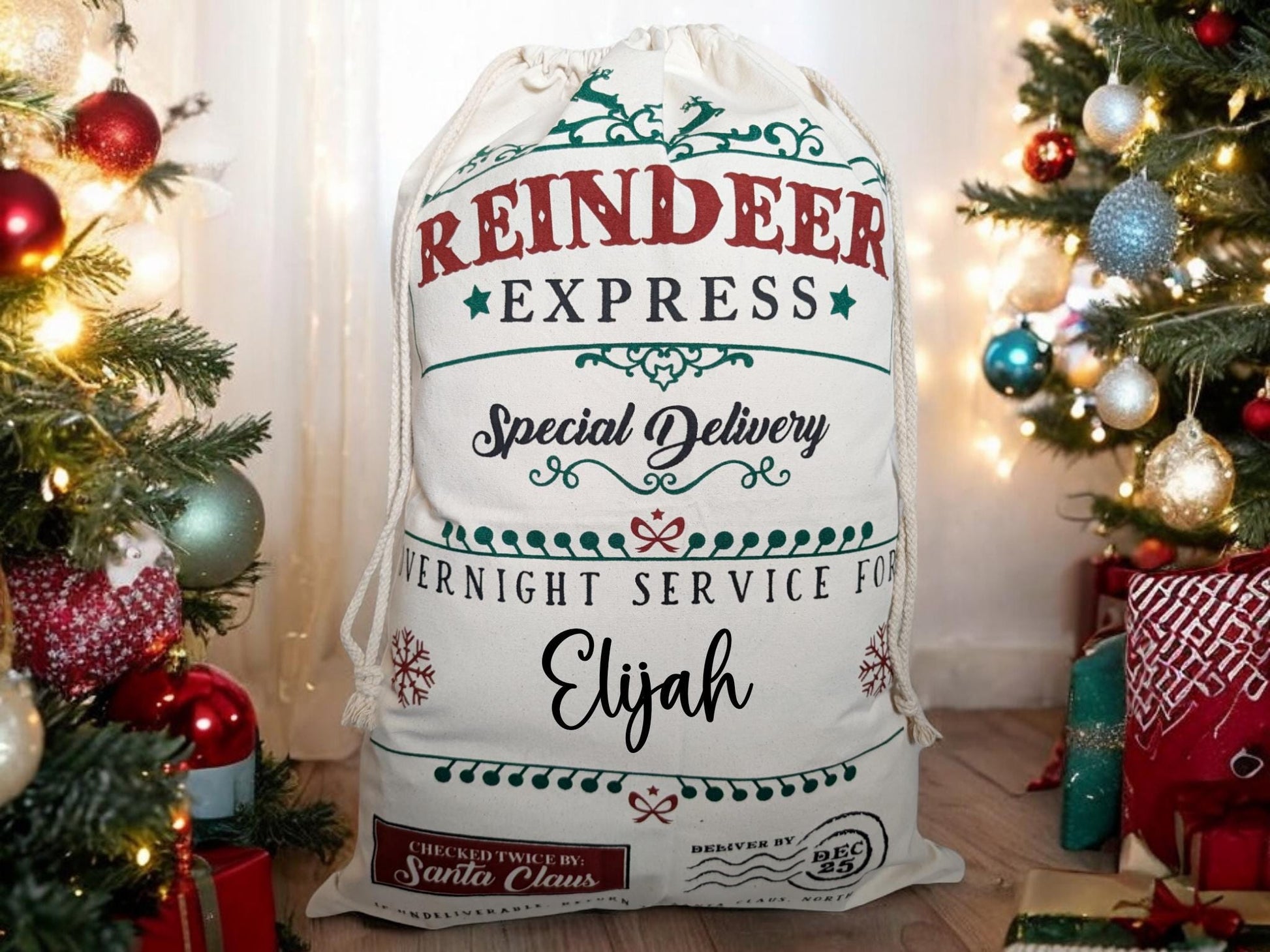 Personalised Christmas Santa Sack Stocking Presents Bag Christmas Eve Gift Name North Pole Mail 50cm x 70cm