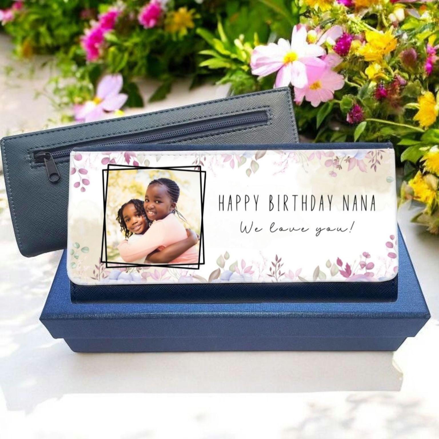 Personalised Ladies Purse PU Leather Wallet in Gift Box Mother's Day Birthday Photo Gift Any Message Gift For Her For Mum Nan 20cm x 9cm