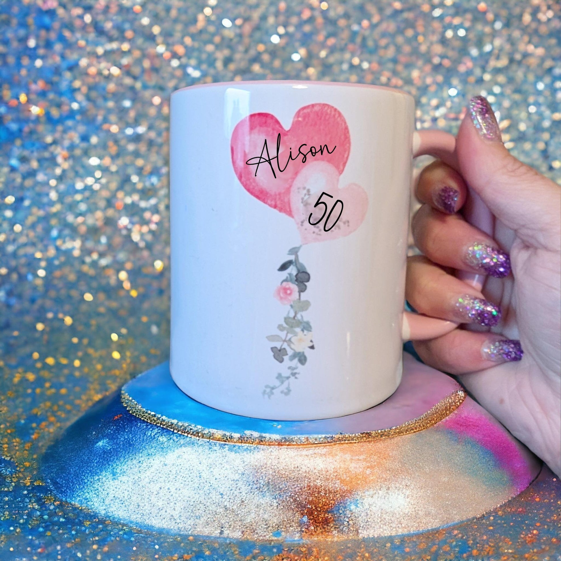 Personalised Mug Birthday Pink Balloon Cup Gift For Her, 18th, 21st, 30th, 40th, 50th, 60th Birthday Present Girlfriend Wife Best Friend