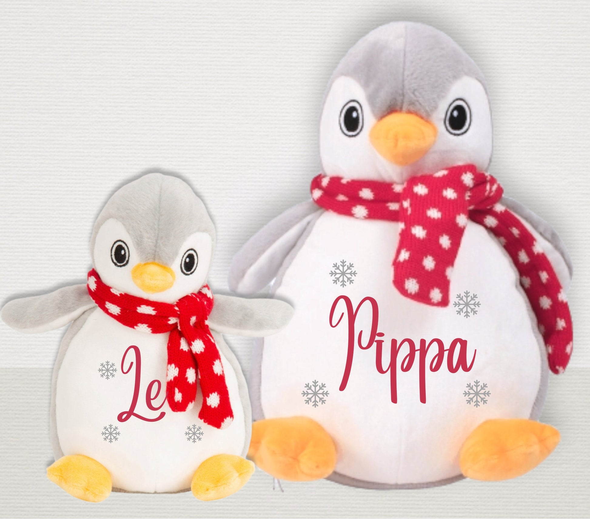 Personalised Penguin Soft Toy Baby's First Christmas Xmas Eve Gift Cute Plush Custom Text Child's Christmas Present
