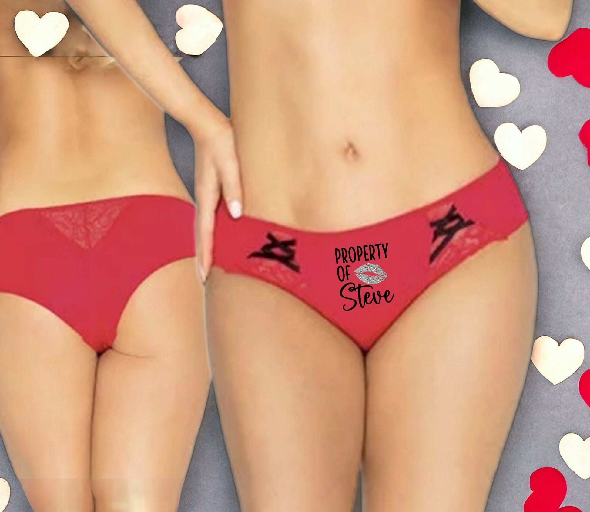 Personalised Property of Ladies Panties Valentine's day gift for her Novelty present Custom Underwear Red