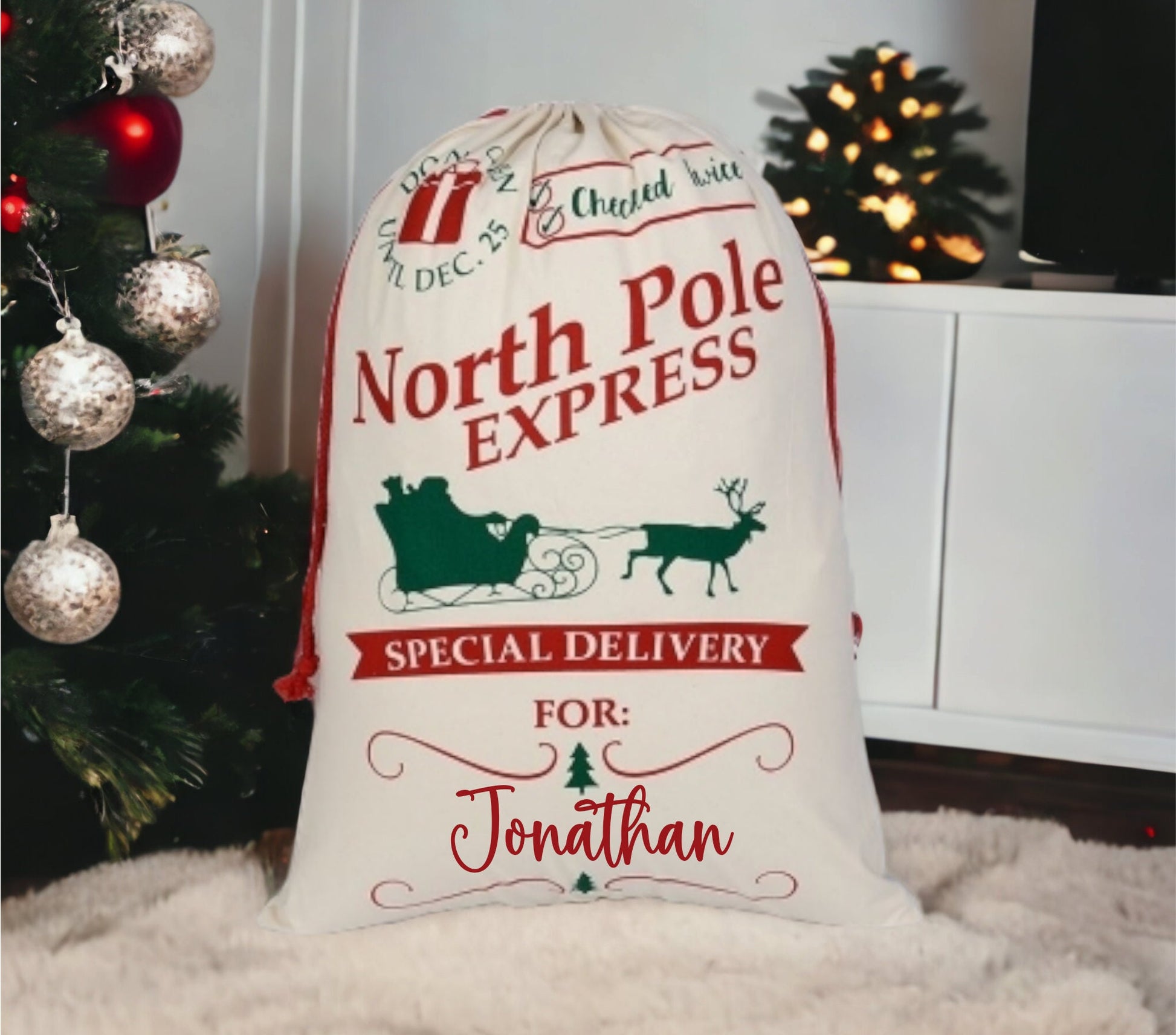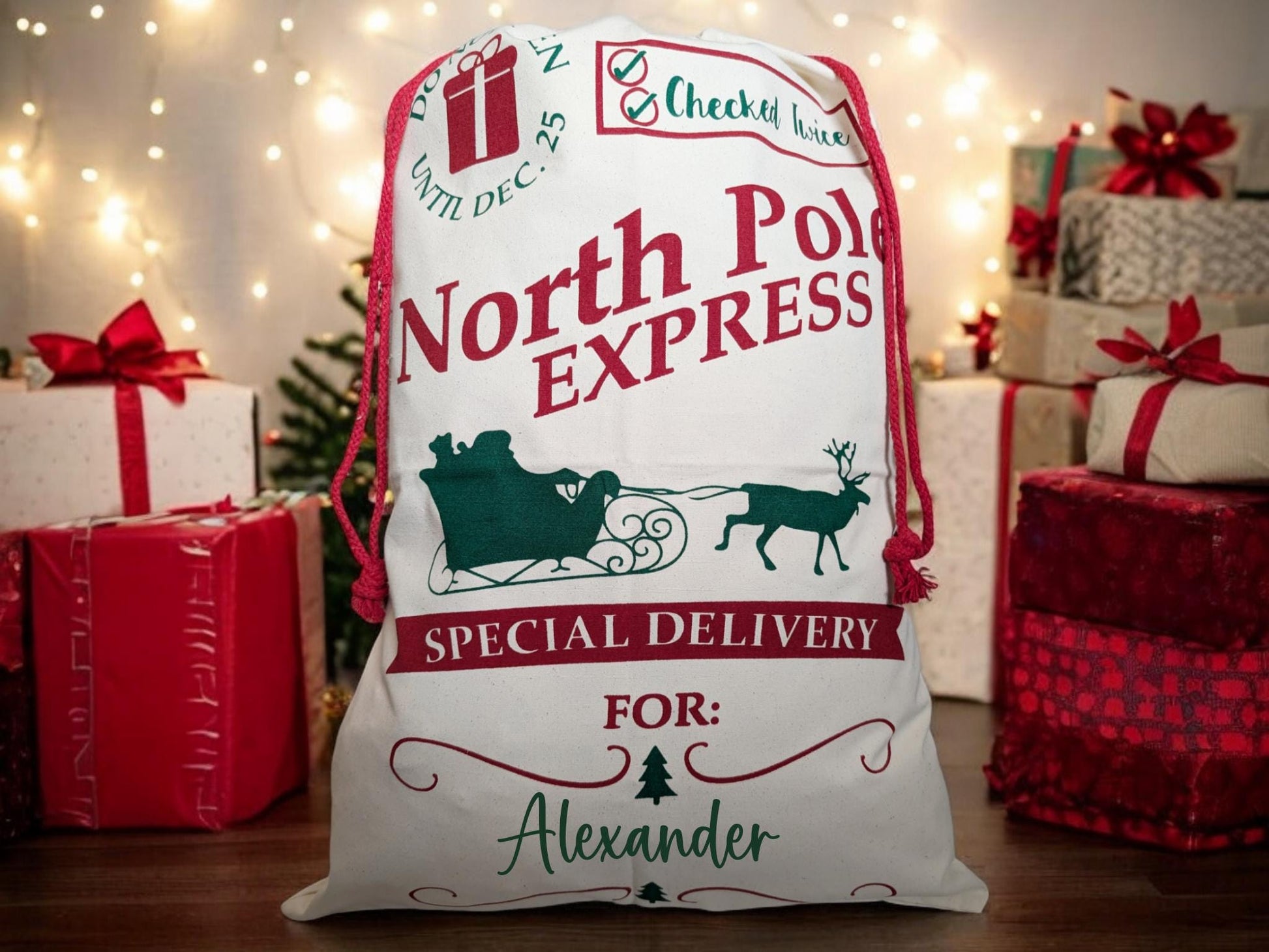 Personalised Santa Sack Christmas Stocking, Christmas Presents Gift Bag, Large Custom Christmas Eve Sack 50cm x 70cm