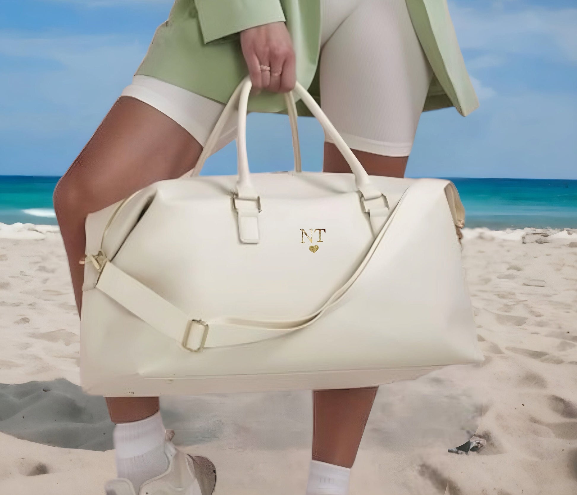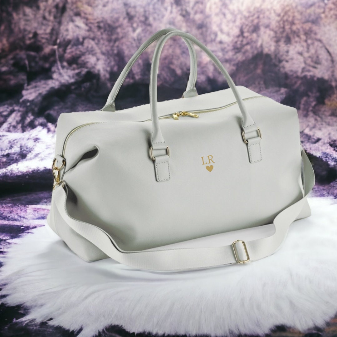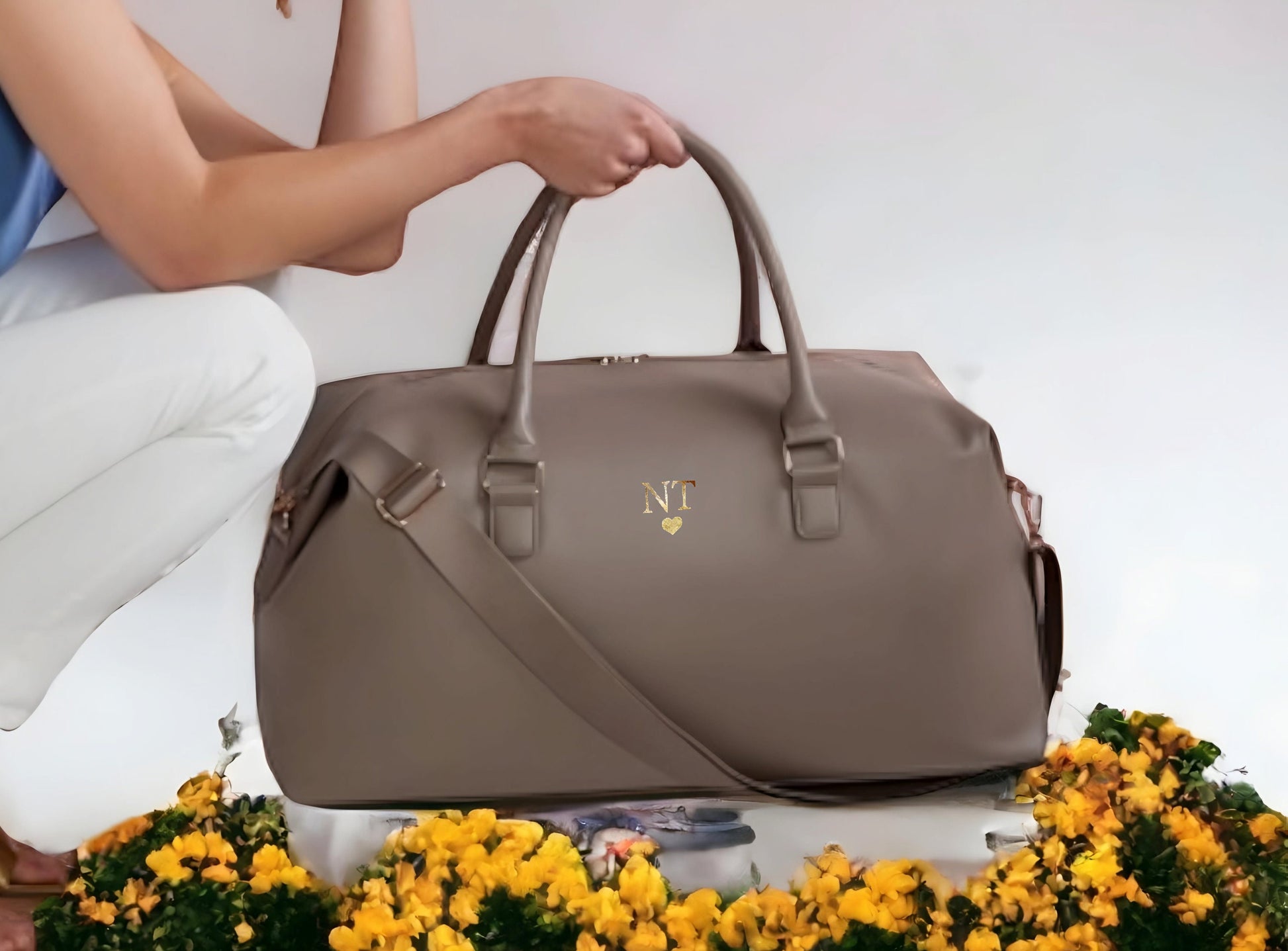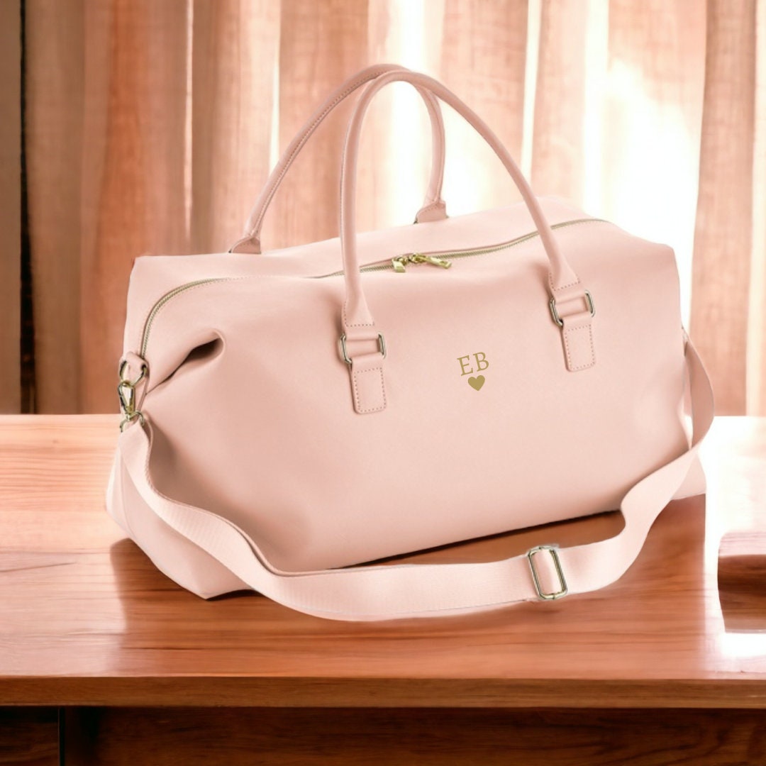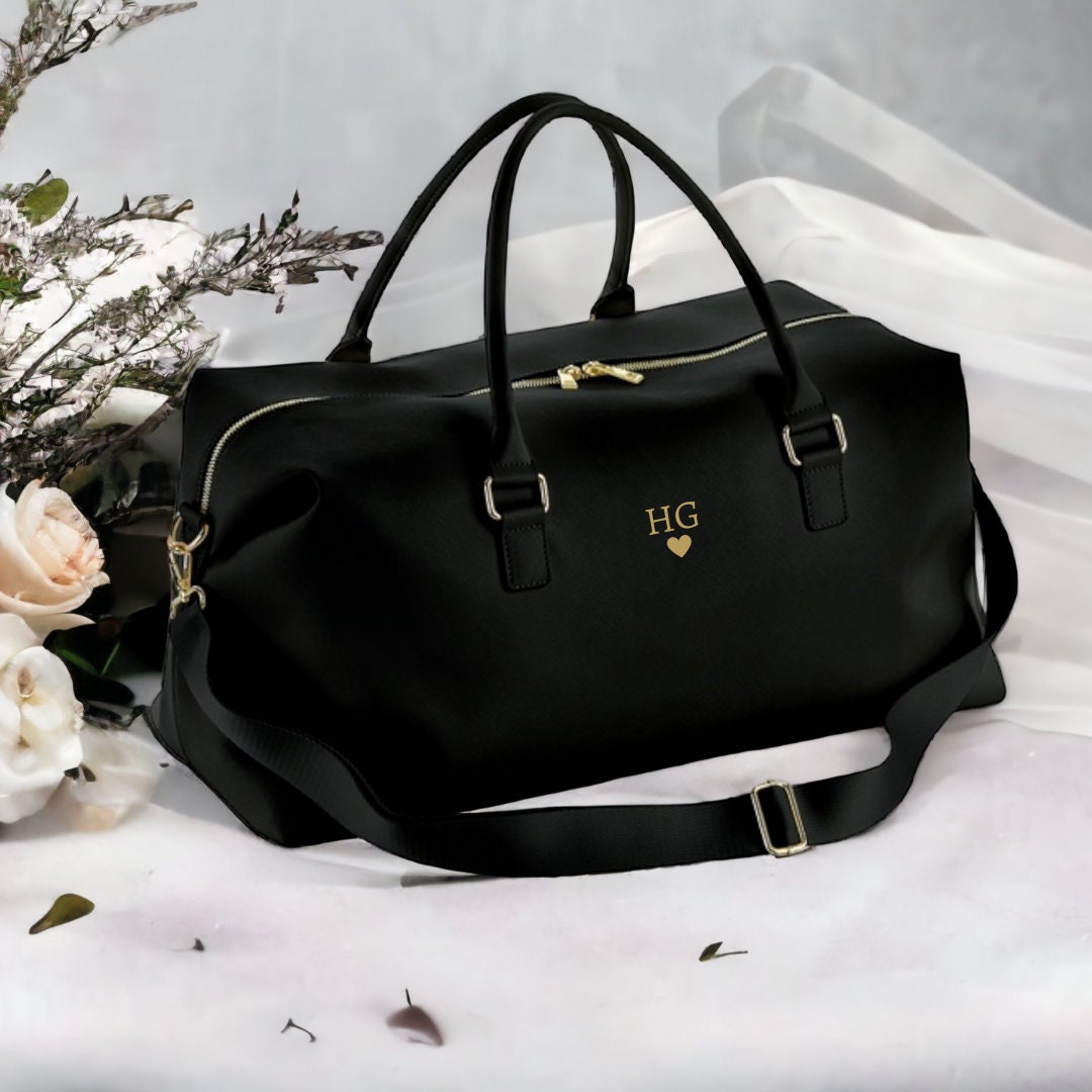 Personalised Weekender Hospital Holdall Mum to Be Bag Saffiano Leather Case Custom Initials Gold Detail Duffel Luggage