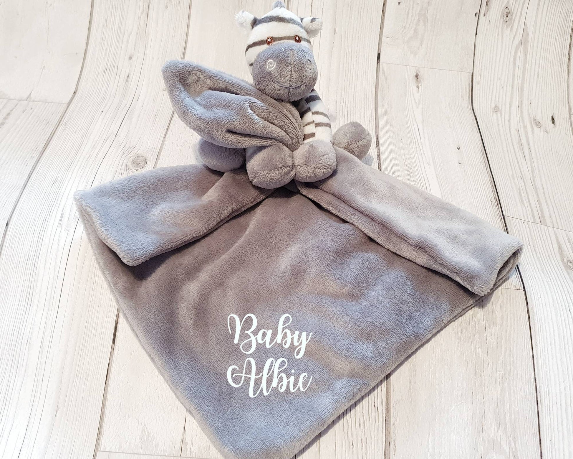 Personalised Zebra Comforter New Baby Gift Lovy Soft Toy Neutral Boy Girl Newborn Present Blanket Blankie Animal Birth Maternity Christening